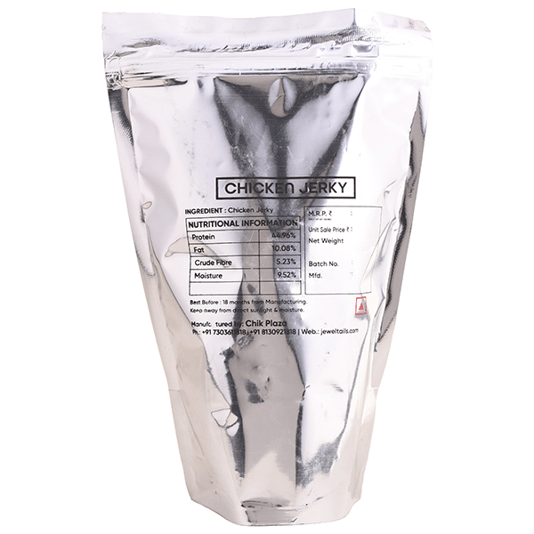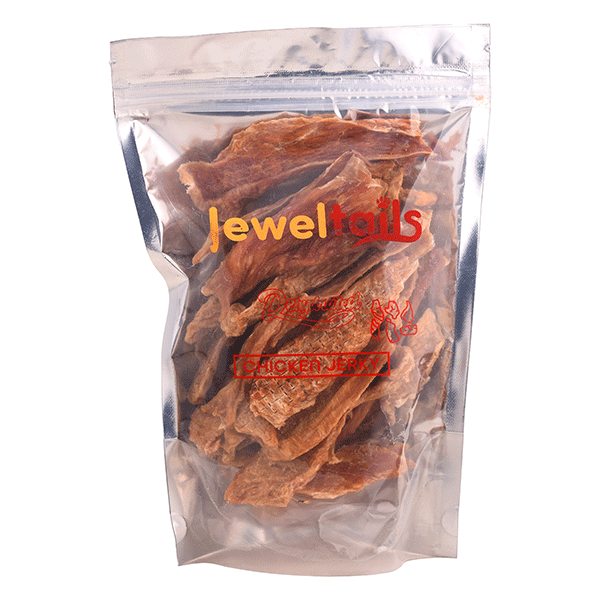 - Dehydrated Chicken Jerky is a preservative-free, protein-packed treat made from completely organic farm chicken that helps in overall healthy weight management of your dog. These crunchy lean strips are perfect for training and rewarding good behaviour.