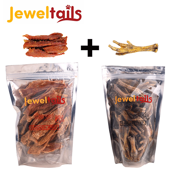 Give your dog a powerful boost of clean protein and joint-friendly nutrition. This combo pairs chewy chicken jerky with collagen-rich chicken feet for all-around wellness.